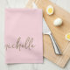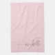 Linge De Cuisine Rose Poudré Monogramme Nom Calligraphie Script Or