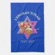 Élégant bleu israélien ROSH HASHANAH serviette de cuisine juive du Nouvel An, montrant une étoile de David avec un bol de pommes et un plat de miel. Ci-dessus se trouve le salut L'SHANAH TOVAH, écrit dans la typographie blanche et faux or, suivi par ROSH HASHANAH dans le texte hébreu en bas. TEXTE EST PERSONNALISABLE, vous pouvez donc créer votre propre texte et orthographe préféré (par exemple Shana Tova), avec les modèles faciles à utiliser. Il y a trois Étoiles de David au centre. Des ustensiles de cuisine, des articles de fête et des cadeaux sont disponibles. Choisissez parmi une large sélection de cartes de célébration juives élégantes et personnalisables et de cadeaux conçus par Berean Designs.