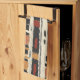 Earthy geometric pattern kitchen towel inspired by tribal mudcloth textiles, featuring hand-painted rectangles, diamonds, and triangles in charcoal black and terracotta on a textured beige background. A warm boho design ideal for rustic décor lovers, artisan style fans, and anyone drawn to earthy geometric aesthetics.