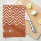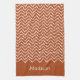 Linge De Cuisine Rusty Red Terracotta Squiggly Chevron With Name