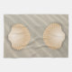 Cute serviette de cuisine de plage avec coquillage en coquillage tan et empreinte de sable de plage.