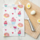 Une petite serviette de cuisine sucrée avec un motif de cupcakes et beignets de la Saint Valentin.