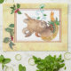 La serviette de cuisine lunatique comporte la chèvre illustrée avec la bannière de Noël sur le cou. L'illustration de ferme de Noël est cadre avec le houx de vacances. Perfectionnez pour n'importe quelle cuisine de pays. Portrait d'animal de ferme par le judithchengart