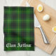 Montrez votre fierté de clan avec ce beau linge de cuisine qui comprend un badge écossais Clan Arthur / MacArthur crest et du texte personnalisable sur l'arrière - plan tartan de clan