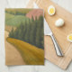 Ce paysage serein représente un chemin sinueux menant à travers une vallée luxuriante et verdoyante vers des montagnes lointaines et ondoyantes. L'élément le plus frappant est un soleil radieux et magnifique qui domine la moitié supérieure de la toile, rendu en coups de pinceau circulaires et amples d'or scintillant et d'ocre doux. Le premier plan est rempli de forêts d'arbres à feuilles persistantes d'un vert foncé dense et de collines douces aux nuances de jaune moutarde, de vert mousse et d'une touche singulière de rose poussiéreux. L'atmosphère générale est celle d'une exploration tranquille, combinant une sensibilité de l'art populaire avec une texture métallique riche qui fait que le ciel semble briller d'une lumière éternelle.