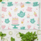 Cette serviette de cuisine comprend des articles de fête à thé blanc, notamment un aqua et un plateau de thé vert avec gâteau rose et cupcakes. Parfait pour un rafraîchissement de la cuisine à ressort. Fait un grand cadeau de fête des mères, cadeau de ménage et cadeau pour un fan de thé.
