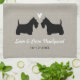 Les silhouettes écossaises de Terrier face à face avec un texte de coeur et personnalisé. Personnalisez ce design personnalisé avec les noms de la mariée et du mariée, la date mariage, ou vos meilleurs voeux pour le couple heureux. Fait un grand cadeau pour les douches nuptiales, les mariages et les anniversaires marquants. Une serviette de cuisine décorative pour les Amoureux de les chiens écossais. Visitez le Doodle World de Jenn pour encore plus de dessins écossais et de cadeaux de mariage sur le thème des animaux.