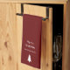 Joyeux Noël Festive serviette de cuisine rouge, avec un design de typographie simple à feuillage persistant et personnalisable. Un grand ajout à votre décor de cuisine en cette période de vacances.