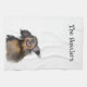 Un adorable dachshund aux cheveux longs sourit avec enthousiasme. Personnalisez la serviette avec votre nom ou en disant. Art original de Leah Wiedemer