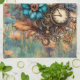Cette jolie serviette de cuisine présente des fleurs et des garde-temps de style Steampunk générés par l'IA au centre sur un arrière - plan fleur sauvage jaune.