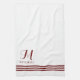 Cette serviette de cuisine simple et élégante apportera une touche de style personnalisée à votre cuisine ! Des rayures rouges foncées et votre initiale en écriture moderne apparaissent sur un arrière - plan blanc.