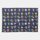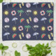 Serviette de cuisine à thème bleu foncé de vacances avec collage de plage illustrée coloré.