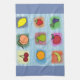 Ce design est de différents types de fruits, dessiné sur un arrière - plan bleu et chaque fruit est sur un fond coloré. Disponible également d'autres produits avec le même design pour votre cuisine. Cette image est disponible sur une variété d'autres produits, il suffit de cliquer sur le lien sous la photo près de "About this Design".