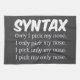 Illustration de typographie amusante qui a le mot syntaxe, puis quelques phrases expliquant l'importance du placement de mots lorsque vous écrivez. Le design amusant est de cueillir votre nez. Le mot est déplacé à des positions différentes dans la phrase pour lui donner des significations différentes. Je ne choisis que mon nez. Il s'agit d'un design qui conviendra à toute personne qui apprend ou enseigne l'anglais.