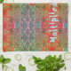 Un motif répétitif ethnique complexe, comme un tapis, en bleu turquoise et rouge. Modifiez le texte si vous le souhaitez.