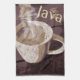 Une serviette de cuisine parfaite pour des amants de café, aussi bien que, cafés, avec une illustration vintage d'une tasse de cuisson à la vapeur chaude de café dans des couleurs de ton chaudes et riches de la terre. Le terme populaire de moitié du 19ème siècle, "Java", est ajouté comme référence spéciale.