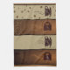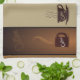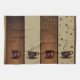 Beau a annoncé la serviette de cuisine avec une illustration moderne fraîche de vecteur du brun 4 cuisant des tasses à la vapeur de café sur les bannières brunes et beiges avec des grains de café -www.webdesignhot.com - une serviette de cuisine à la mode et élégante - un cadeau parfait pour des amants de café !
