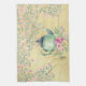 Linge De Cuisine Théière d'aquarelle et or élégants de fleurs