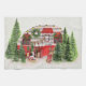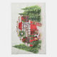 Serviette de cuisine avec un thème de Noël mignon et capricieux. Une caravane cosy décorée pour Noël entre quelques pins.
