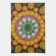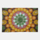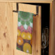 Cette serviette de plat est composée d'un arrangement kaléidoscope de tomates héraldiques rouges, jaunes et oranges avec concombres et persil.