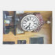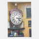 A watercolor of an old British train clock.
