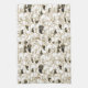 un troupeau énorme des moutons noirs et blancs très heureux de bande dessinée couvrent cette serviette de cuisine.