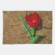 Tulipe jaune et rouge printanière, roche brune au lac Arrowhead. Photo de Sandy Closs. Pâques, floral, fleurs rouges, Printemps, Saint-Valentin, valentines, mariage, mariage, Saint Valentin
