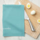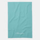 Modèle bleu Turquoise moderne blanc Script arrière - plan de couleur solide. MODÈLE pour le nom en script noir. Une serviette de cuisine moderne avec une modèle facile à personnaliser, pour une cuisine personnalisée parfaite.