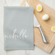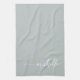 Serviette de cuisine personnalisée élégante et moderne avec monogramme vert sauge minimaliste. Caractérisée par un nom personnalisé dans une police à queue swash écrite à la main (ou typographie) sur un fond de couleur vert sauge ou vert poussiéreux. Celles-ci sont faciles à personnaliser. Cadeau de pendaison de crémaillère féminin et élégant, fête des mères, mariage, également pour un anniversaire, enterrement de vie de jeune fille et c'est pour la fille qui aime les choses féminines minimalistes uniques.