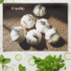 Des gousses entières d'ail sur un arrière - plan de rotin brun tressé sont aménagées avec goût sur cette serviette de cuisine unique. Les cinq ampoules blanches à l'ail disposées en triangle sont surlignées d'ombres sombres. Le mot ail peut être changé pour personnaliser ces serviettes avec un nom de famille ou tout texte que vous souhaitez. La photographie culinaire à vie morte a une sensation dramatique ainsi qu'une sensation rustique idéale pour toute cuisine de campagne. À la fois décoratif et fonctionnel, ce parfum à base de plantes est un cadeau idéal pour un ménage ou pour un chef gourmet ou Votre cuisinier préféré. Chaque cuisine a besoin d'ail frais, d'herbes et d'épices. C'est une photographie alimentaire originale de JLW_PHOTOGRAPHY.