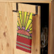 Serviette de cuisine de 16" x 24" avec une image de vitrail Art Déco avec rayons dorés de lumière émanant d'un soleil rouge-orange. Bordures à bandes rouges et vertes. Voir la serviette en tissu assortie, la serviette en papier, le set de table en tissu, le set de table en papier et les dessous de verre. Voir l'ensemble de la collection Roaring 20s Kitchen Towel dans la NOURRITURE/BEV | Section Linge.