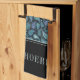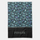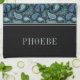 Serviette de cuisine avec un nom personnalisé prin sur un élégant motif paisley bleu abstrait floral rétro élégant.