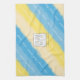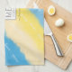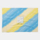Aquarelle rayures dans deux tons bleu et jaune couleurs d'été avec calligraphie écrite été océan soleil script plage. Soleil, plage et ambiance océanique rayures pastel. Un badge d'été et un nom à personnaliser en le remplaçant par votre propre logo.