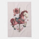 A kitchen towel with a cute retro style carousel horse. Drawn in Pretty pink colors with fancy flowers.