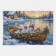 Bring happy, cloud-like charm to your holiday season with this adorable White Samoyed Christmas design! This magical scene features three cheerful, thick-coated Samoyeds (with their famous "Sammie smile") sitting contentedly in a cozy wooden boat, gently floating on a serene snowy lake at sunset. The boat is beautifully adorned with glowing Christmas string lights and fragrant pine garlands, while the dogs wear festive scarves. They are surrounded by colorful wrapped presents and cheerful holly branches. Soft snowflakes gently fall, and the shimmering reflection of the lights on the water creates a truly magical winter holiday atmosphere. This design is a perfect Christmas gift for any Samoyed owner, dog lover, or admirer of festive and beloved spitz dog art, capturing the serene joy of the season.