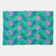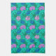 Serviette de cuisine dans un vintage William Morris, Art Nouveau, imprimé floral de chrysanthèmes stylisés, numériquement rehaussés et colorés, dans les tons doux aqua et bleu turquoise cérulean, et violet / lavande, sur un arrière - plan turquoise / paon