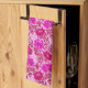Serviette de cuisine dans un vintage William Morris, Art Nouveau, imprimé floral de chrysanthèmes stylisés, numériquement rehaussés et colorés, dans les tons bordeaux, marron, et prune sur un arrière - plan rose pastel