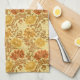 Serviette de cuisine dans un vintage William Morris, Art Nouveau, imprimé floral de chrysanthèmes stylisés, numériquement rehaussés et colorés, dans les tons or moutarde, marron caramel, et cuivre, sur un arrière - plan crème