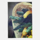 La récolte estivale de courgettes, de courges jaunes d'été et de gourdes colorées dans un ancien panier en osier. Photographie de Susan. Visitez SmilinEyes_Posters pour plus d'impressions et d'affiches de fleurs, d'animaux, de nature et d'arts numériques.