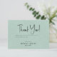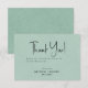 Whimsical minimaliste moderne, personnalisable typographie de script noir, bienvenue carte de remerciements mariage. L'arrière - plan imprimé de lin vert clair ajoute une touche d'élégance classique et organique. D'autres couleurs sont disponibles.
