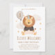 First Birthday Invitation Blue Balloon lion and birthday hat.