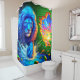 This shower curtain has a lion design on it.