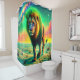 This shower curtain has a lion design on it.