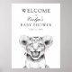 Welcome guests to your baby shower with this beautiful poster, featuring a hand drawn black and white lion cub for a jungle theme baby shower. Add the guest of honor's name, shower date and custom welcome text using the fields provided.