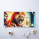 Ce tapis de bureau a un lion effrayant qui s'écrase à travers le mur dessus.