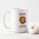 Wake up to a blend of romance and humor with this personalized lion coffee mug. Featuring a cute lion in heart-shaped glasses holding a rose, the design playfully reads, "Love is in the air and it smells like coffee." Custom-printed with the name William (or your choice of name), this high-quality ceramic mug makes an ideal Valentine’s Day gift or anniversary surprise for the coffee lover in your life.