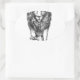 Tattoo style illustration of a lion standing and guarding over sleeping lamb with lotus flower on head.