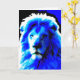 The King of the Jungle. Birthday card with a retro screen print inspired close-up portait of a lion's head in striking colours - blue, black and white. A customizable design for you to personalise with your own text, pictures and ideas. Created using original photographs and digital effects by Jess Perry.