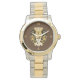 A geometric lions head design on brown. A majestic lion with twelve four numerals.