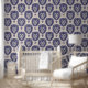 This is an elegant looking wallpaper with repeating pattern of lion heads.